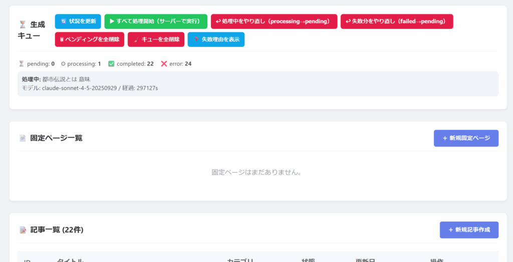 1分、2分の労働で100記事とか生成を完全にAIシステムに委ねられます。