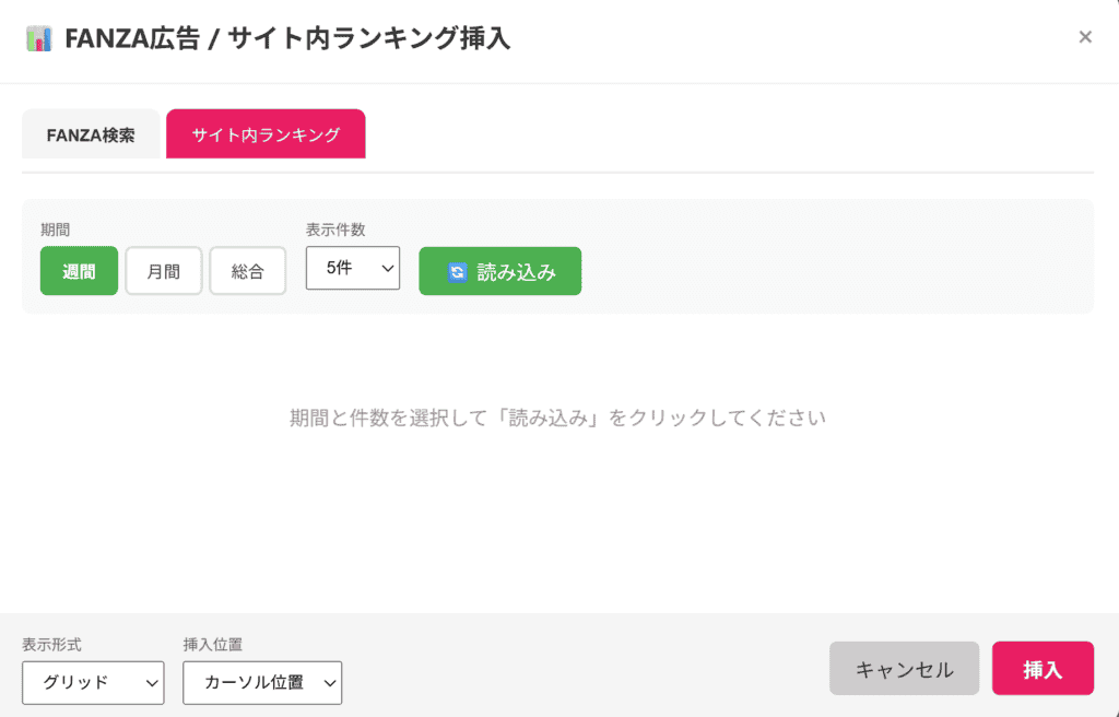 ボタン下部、記事内のカーソルの位置、そして表示形式は合計5種類用意しています。