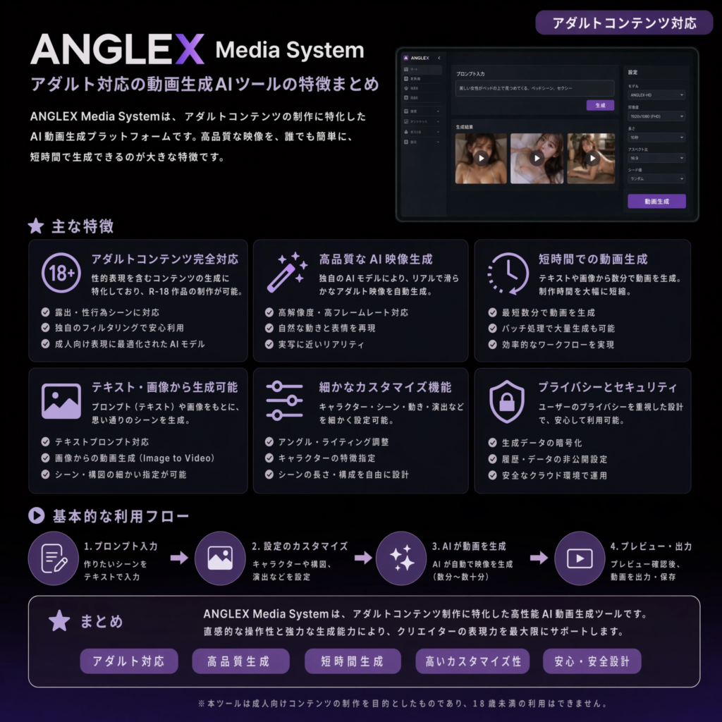 ANGLEX Media System アダルト対応の動画生成AIツールの特徴まとめ