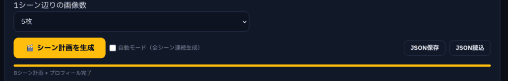 本文が終わると次に画像生成ボタンが出てきます。今回は、1シーン8枚に設定したため、8枚の生成が可能です。