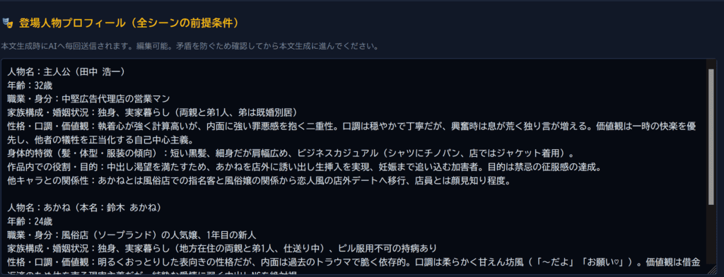 また、全自動モード、そして今後は、画像生成以外の自動モードを搭載するため、初期のキャラ設定とコピペのみで、殆どの土台が自動で完成するという前代未聞の機能です。
