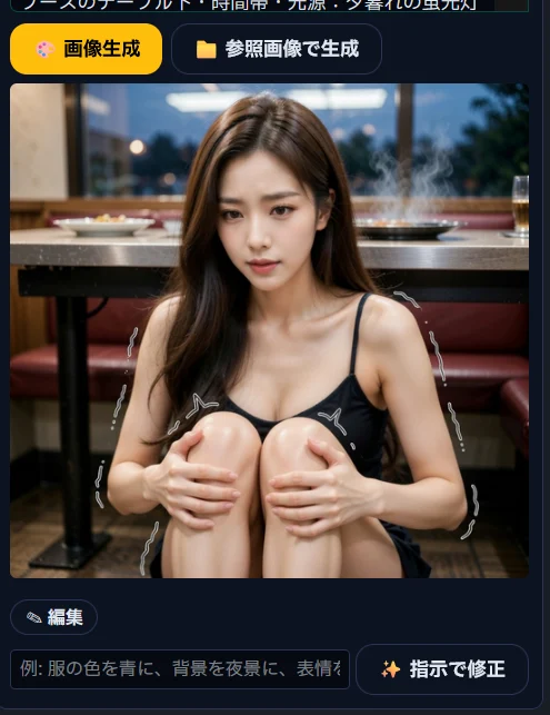 するとそのシーンの画像を生成します。生成した画像は全て履歴に入ります。