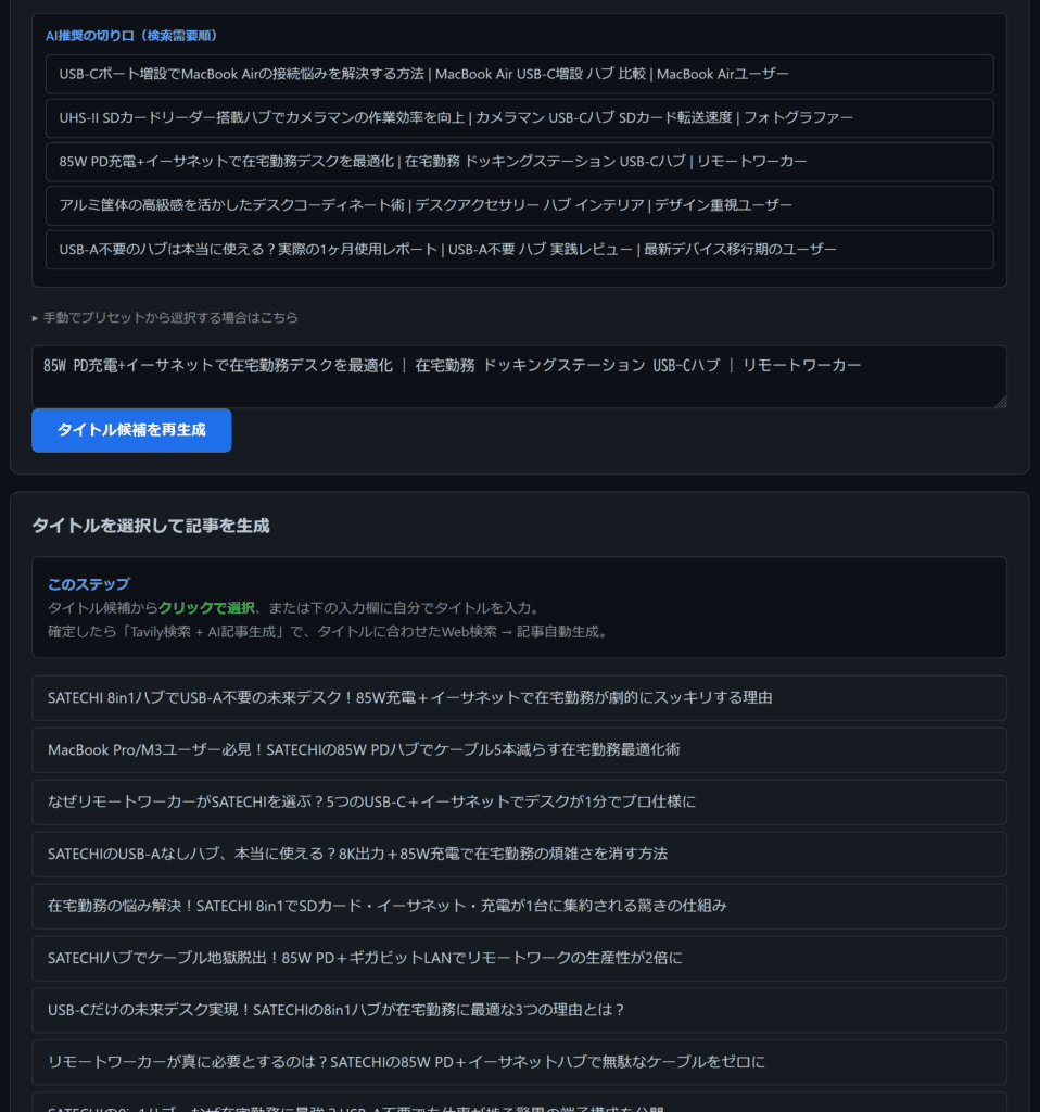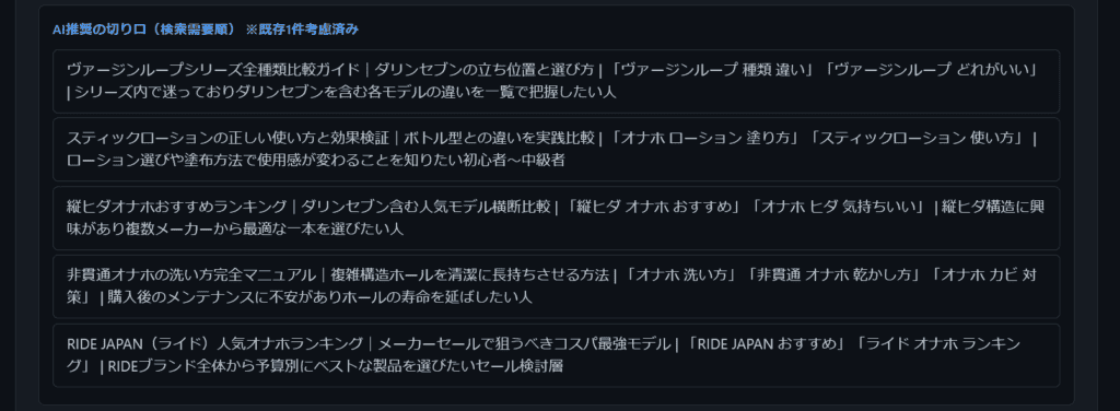 過去記事を理解して、検索需要を調査して提案する仕組みです。