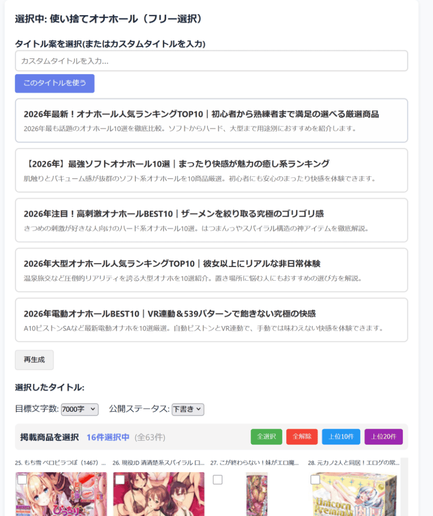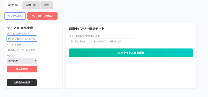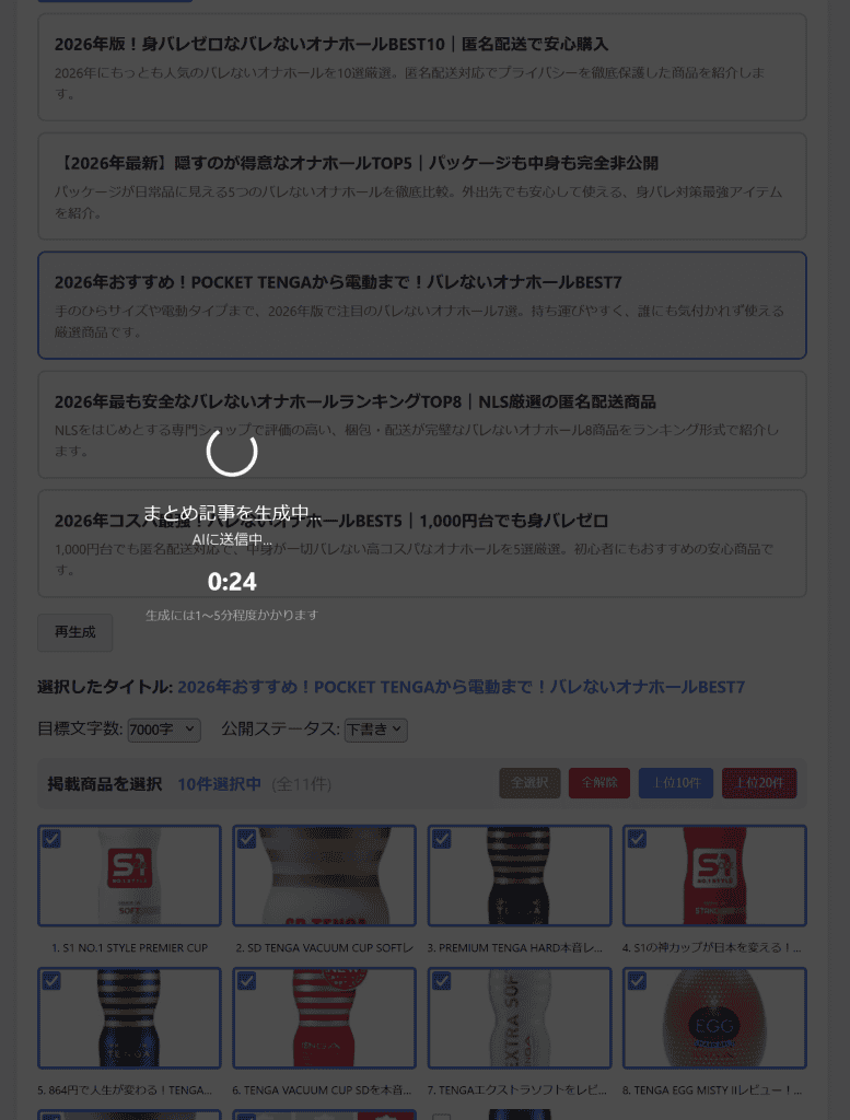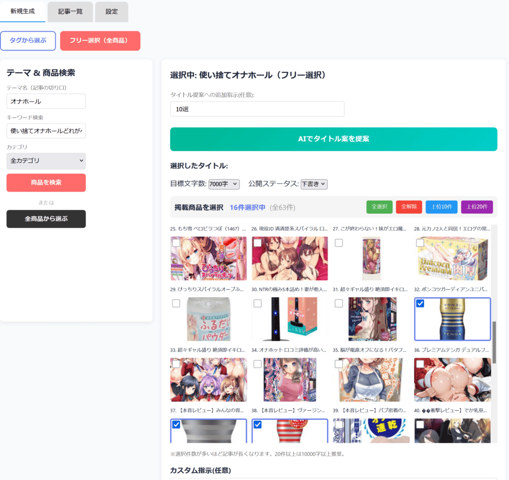 AIツールは、せいぜい1つの記事を目一杯頑張って作る、その後は人間の細かい指示がないと成立しませんが、物収Premiumでは、独自のアルゴリズムで実現しています。
