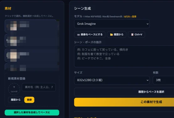 特にアダルトコンテンツの場合、表情のバリエーションを増やせるのは大きな強みになります。同じキャラで複数のシチュエーションを作れるので、サイト内の統一感も出せます。